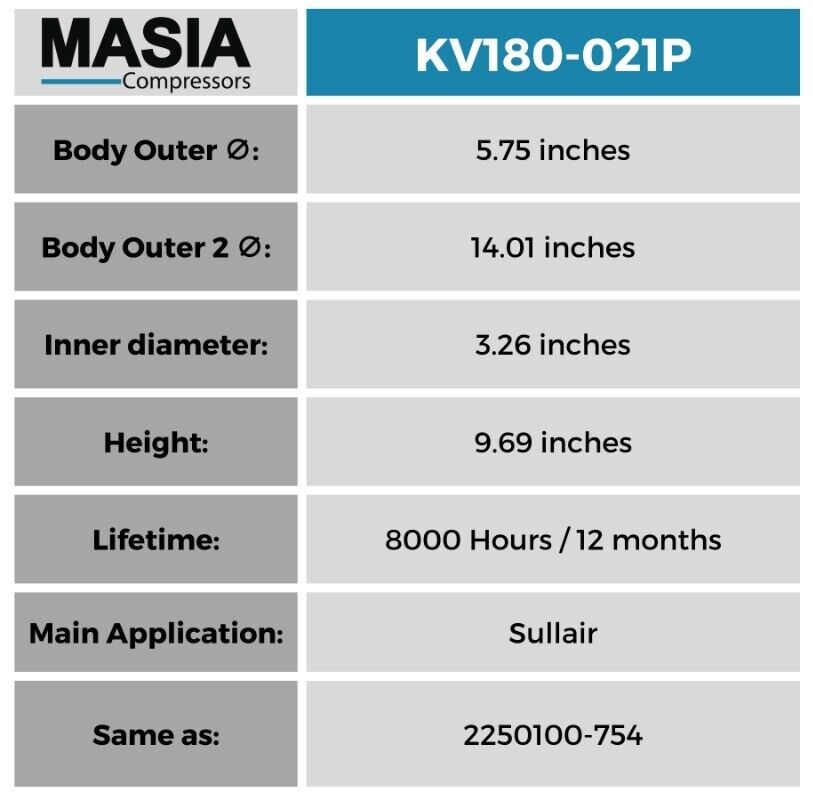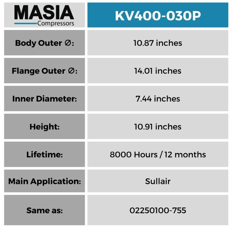 Kit separador de aire/aceite para compresores Sullair LS: 2250100-755 y 2250100-754