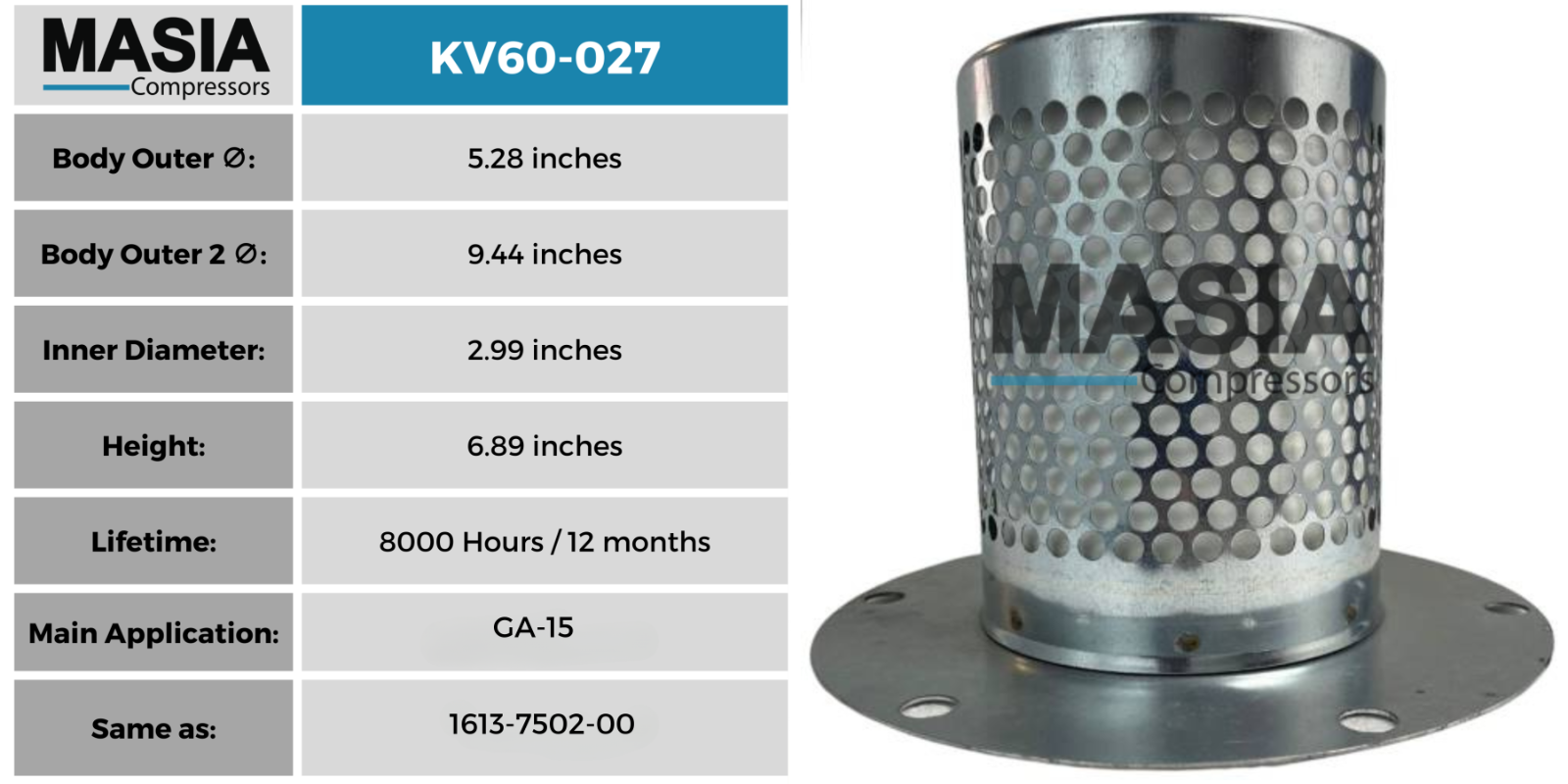 2901-0343-01 Atlas Copco Separator Element. Fits in GA-11 thru GA-30 Compressors