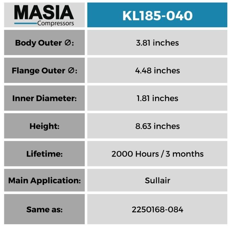 Sullair Air/Oil Filter Kit for 75-100HP Compressors: 2250168-053, 2250168-084